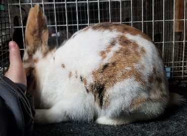 | Breed: New Zealand mix Color: harliquinized Blue Steel COI: 00.000% Age: Unknown | ||