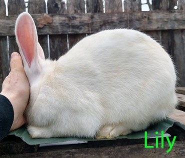 | Registration: MMC LMD2 Breed: New Zealand Color: REW DOB: 6/6/2018 Breeder: mary-margaret conley COI: 00.000% Color type: __ __ __ cc EsE __ Age: 6 years 9 months | L Jb_lily (D) | |